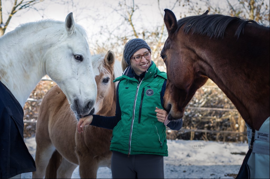 Mein Wunsch mehr Zeit mit Pferden verbringen zu können, ist mit den Jahren immer stärker geworden und so bin ich heute Reitlehrerin (Trainer C Klassisch-Barockes Reiten / Trainer B Basissport) und geprüfte Osteopathin für Pferde. Meine drei eigenen Pferde könnten unterschiedlicher nicht